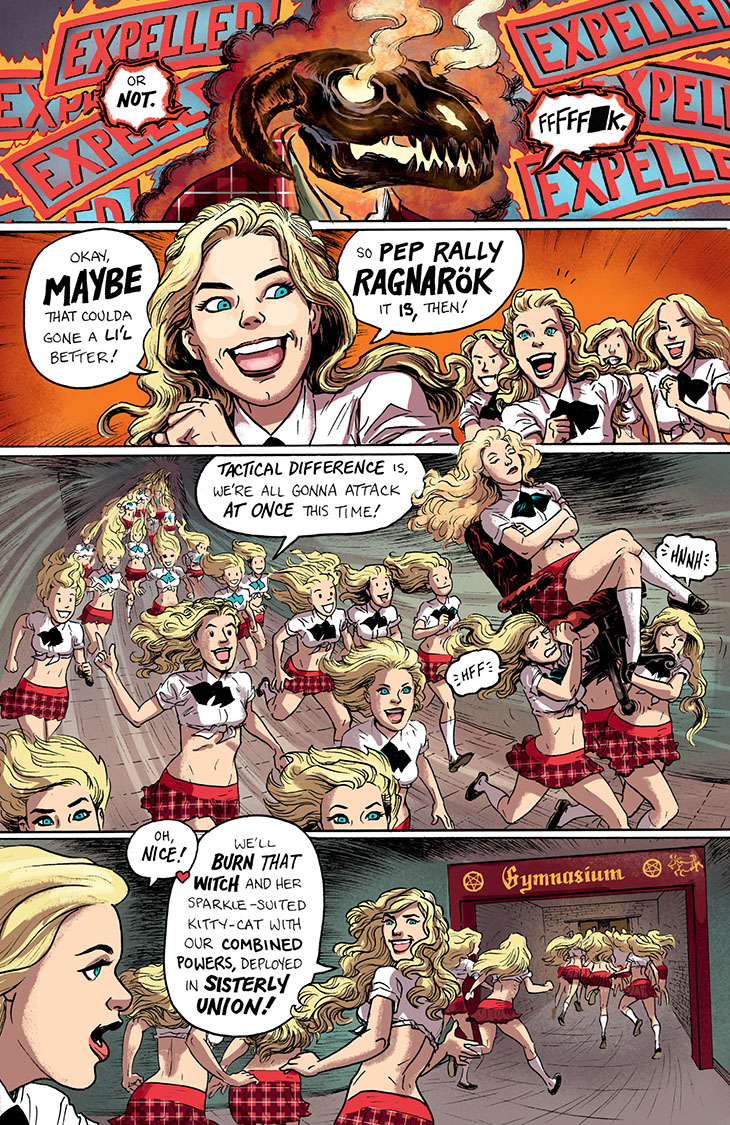 We continue serialization of the collected edition of the six-issue 2018 miniseries Empowered and Sistah Spooky’s High School Hell, written and laid out by me and featuring art and lettering by Guest Artist Carla “Speed” McNeil and coloring by Jenn Manley Lee.